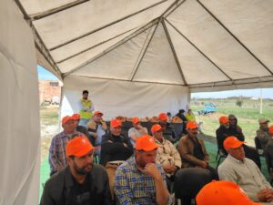 وأشرف المهندس أمين موكيل، بمساعدة المهندسة غيتة بوزيدي وزينب الحناوي، على ورشة حقلية حول أهمية تحاليل التربة والطرق الصحيحة لأخذ العينات، حيث تم تسليط الضوء على دور هذه التحاليل في تحسين فعالية التسميد وفق تركيبة متوازنة، بما يضمن إنتاجًا زراعيًا مستدامًا.
