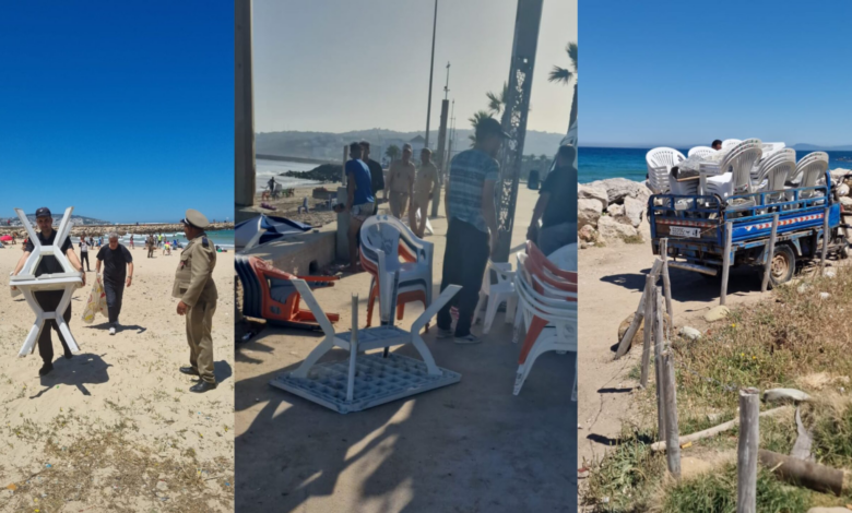 وظهرت مقاطع فيديو منتشرة على مواقع التواصل الاجتماعي لتدخل السلطات لتحرير الملك العمومي البحري ما لقي استحسانا لدى المصطافين .