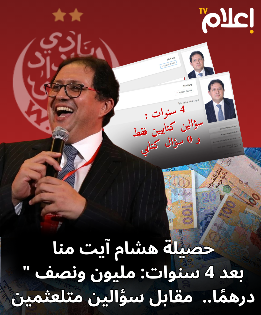 آيت منا، الذي دخل البرلمان ليصبح جزءًا من المشهد السياسي، اكتشف سريعًا أنه يمكنه أن يظل في “الصفوف الأمامية” دون أن يبذل جهدًا حقيقيًا، بل ربما حتى دون أن يحرك ساكنًا. وحصيلته ظلت بكماء، بسؤالين شفويين فقط طيلة أربع سنوات، وصفر سؤال كتابي، مقابل مليون ونصف درهم، وهو مجموع أجرته الشهرية الصافية لأربع سنوات من عضويته بمجلس التواب، دون احتساب التعويضات التكميلية.. مما يترك السؤال معلقًا: ما محل السّكون من الإعراب؟ أو بمعنى آخر، لم نحن هنا؟