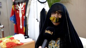 وكشفت أن الجناح يعرض أزياءً تقليدية مثل “الفروخة” و”القندورة” للصغار والكبار، إلى جانب “المشاحل” الخاصة بتكحيل العين، و”الحية”، وهي دمية قديمة كانت من ألعاب الأطفال، بالإضافة إلى “الكلوتي” المخصص للأطفال الصغار، و”القحفية”، وهو قميص مطرز ترتديه الفتيات ويكون أبسط بالنسبة للصبيان.