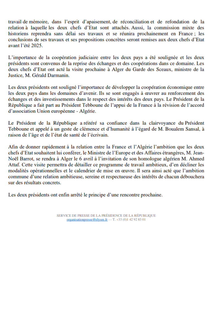 وبعد شهور من التوتر، قبلت الجزائر اتفاقًا مع فرنسا لإنهاء الأزمة بين البلدين دون أي مكاسب، بينما فرضت باريس أجندتها بالكامل.