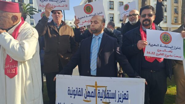 ورفع المحتجون شعارات تندد بإقصاء المهنيين من إعداد المشروع، من بينها “لا لمشروع قانون يهمش مهنة التوثيق العدلي… نعم لسحب المشروع وضمان العدالة التشريعية”،مؤكدين أن النص المعروض يتضمن مقتضيات تمس باستقلالية المهنة وتخل بالتوازن داخل منظومة التوثيق، بما قد ينعكس سلبا على مستقبل التوثيق العدلي ودوره في تأمين المعاملات وحماية الحقوق.