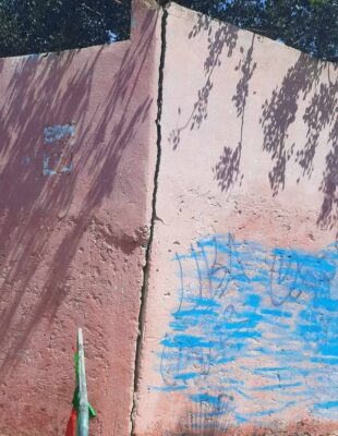 في سلا، وصلتنا صور صادمة لسور إعدادية البستان بالقرية، كتب عليه: “انتباه سور آيل للسقوط”.