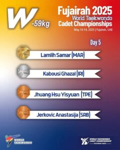 سجلت البطلة المغربية الصاعدة سمر المليح إنجازا تاريخيا بفوزها بالميدالية الذهبية في وزن أقل من 59 كلغ، خلال منافسات بطولة العالم للفتيان في التايكواندو التي احتضنتها مدينة الفجيرة بالإمارات، اليوم الأربعاء 14 ماي 2025.