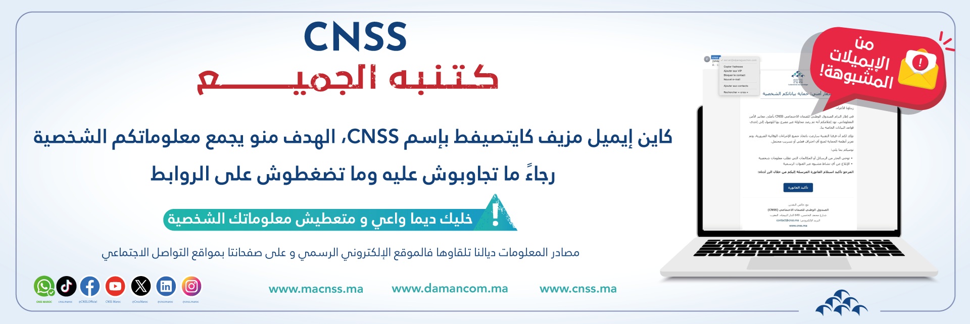 ال “CNSS” تحذر مرة أخرى من خطر الإيمايلات المزيفة