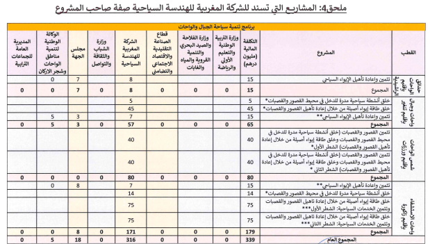 وكانت الاتفاقية تهدف إلى تحسين البنية التحتية السياحية في المناطق الجبلية والواحات، تقديم دعم مالي وتقني للمقاولات السياحية الصغيرة والمتوسطة، خلق أقطاب سياحية تنافسية تشمل مناطق الراشيدية، ورزازات، ميدلت، تنغير، وزاكورة، تطوير مدارات سياحية متنوعة مثل “حدائق الواحات”، و”شمس الواحات”، و”حصون الواحات”، وتأهيل السياحة في ضيعات الواحات وتطوير الأنشطة الرياضية والترفيهية، دعم الإيواء السياحي البديل عبر منح تصل إلى 20% من قيمة الاستثمار، توفير استشارات وتوجيه للمقاولات، وإنشاء منصة رقمية لدعم المشاريع من التصميم حتى التشغيل.