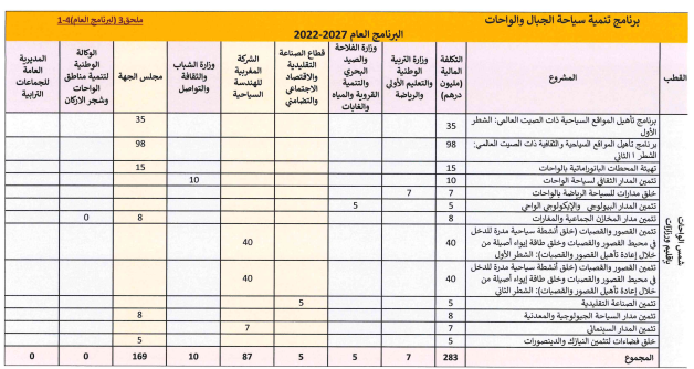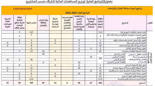 وحسب الاتفاقية التي اطلع عليها “إعلام تيفي“،يتقدر التكلفة الإجمالية التقديرية اللازمة لإنجاز البرنامج المتعلق بتنمية قطاع السياحة بالجهة موضوع هذه الاتفاقية بحوالي 1.388 مليار درهم، يتم تمويله عن طريق المساهمات المالية للشركاء.