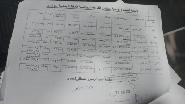 وتقود هذه المعطيات إلى جمعية مجلس القاعة الرياضية المغطاة ببيوكرى، وهي جمعية تتشكل تركيبتها من أربع أعضاء منتمين إلى المجلس الجماعي، فيما ينتمي الأربعة الآخرون إلى أطر الشبيبة الرياضية، وذلك في إطار شراكة يفترض أن تضبطها قواعد قانونية صارمة. غير أن الواقع، كما تكشفه الوثائق والمعطيات المتوفرة، يسير في اتجاه مغاير تمامًا.