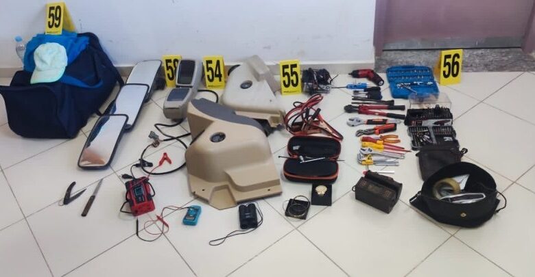 وقد مكنت عملية الضبط والتفتيش عن العثور بحوزة المشتبه فيه على مجموعة من قطع غيار آليات للأشغال يشتبه في كونها من متحصلات عمليات للسرقة، فضلا عن سيارة وأدوات ميكانيكية ومعدات إلكترونية تستعمل في تسهيل هذا النشاط الإجرامي