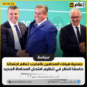 تستعد جمعية هيئات المحامين في المغرب لعقد اجتماع حاسم يوم الاثنين لمناقشة إعلان رئيس الحكومة، عزيز أخنوش، بشأن الموافقة على إجراء امتحان جديد للمحاماة قبل نهاية العام الحالي.