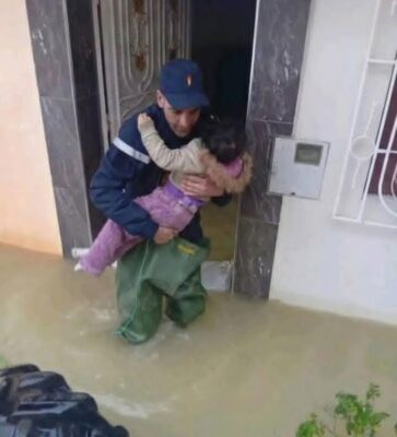 منذ بداية الفيضانات، انتشرت على مواقع التواصل الاجتماعي لقطات إنسانية مؤثرة، لرجال الوقاية المدنية الذين يتواجدون في الصفوف الأمامية، يتعاملون مع الساكنة بحس عال من الإنسانية، يرافقون المواطنين خلال الإجلاء، ويقدمون الدعم النفسي والمعنوي، خصوصا للمسنين الذين تسيطر عليهم حالة من الهلع.