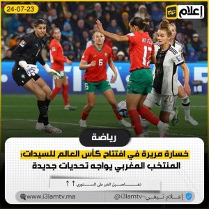في خبر رياضي محبط، خسر المنتخب الوطني المغربي لكرة القدم النسائية مباراته الأولى في كأس العالم للسيدات المقام في أستراليا ونيوزيلندا. وجاءت هذه الهزيمة أمام المنتخب الألماني بنتيجة كبيرة، حيث تلقى المنتخب المغربي 6 أهداف دون أي رد.