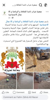 في هذا الإطار، تقوم جمعية شباب تامدة للثقافة والرياضة والأعمال الاجتماعية بعملية تبليط الطريق بتمويل من تبرعات ومساهمات الساكنة