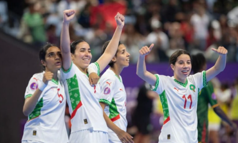 ضمن المنتخب الوطني المغربي للسيدات لكرة القدم داخل القاعة مكانه في نهائي كأس الأمم الإفريقية “المغرب 2025”، بعد فوزه العريض على نظيره الأنغولي بخمسة أهداف مقابل هدف، في اللقاء الذي جرت أطواره مساء أمس الإثنين 28 أبريل، بالقاعة المغطاة لقصر الرياضات بمجمع الأمير مولاي عبد الله بالرباط، برسم دور نصف النهائي.