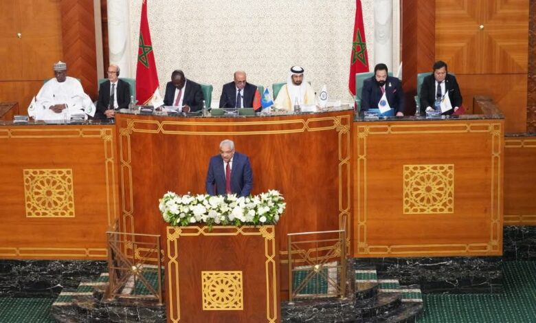 من جانبه عبّر رئيس البرلمان العربي، السيد محمد بن أحمد اليماحي، في مستهل كلمته خلال تلاوته لإعلان الرباط، عن مشاعر الامتنان العميق والعرفان الصادق لصاحب الجلالة الملك محمد السادس نصره الله، تقديرًا لدوره الريادي في ترسيخ أسس التعاون جنوب-جنوب، ودعمه المتواصل لكافة المبادرات والمشاريع التنموية والتضامنية الهادفة إلى تحقيق الوحدة والاندماج والتنمية المشتركة بين دول الجنوب.