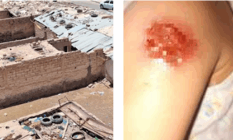 ما نتج عنه أمراض جلدية والتهابات تنفسية للعديد من السكان، بينهم طفلة تعرضت للدغة بعوض سام انتهت بإصابتها بالتهاب خطير في يدها.