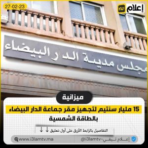 خصصت جماعة #الدارالبيضاء 150 مليون درهم (15 مليار سنتيم) لإنجاز مشروع استعمال الألواح الكهروضوئية في المباني التابعة لها بالإضافة إلى مقار #مقاطعات_الدارالبيضاء.