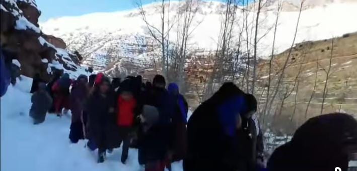 وسط الثلوج.. ساكنة دوار بوخادل تحمل مريضا على الأكتاف لعشرات الكيلومترات