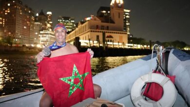 السباح المغربي حسن بركة يحقق إنجازه بالسباحة حول جزيرة مانهاتن