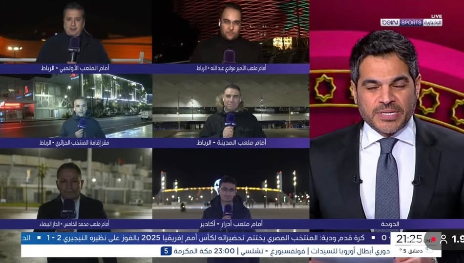 إعلام تيفي لمتابعة كل فعاليات “كان” 2025 بالمغرب، جرى تخصيص أربع قنوات BeIN Max باللغات العربية و الإنجليزية و الفرنسية، من أجل تغطية لمدة 15 ساعة متواصلة يوميا. وسيتولى الأستوديوهات التحليلية للمباريات نخبة المقدمين في القناة : محمد سعدون الكواري – عبد العزيز النصر- أمين السبتي – أحمد فؤاد، الأستوديوهات ستنطلق ساعة ونصف قبل المباريات و يوم الافتتاح قبل ذلك بساعتين. كما سيتم تخصيص 6 مراسلين لتغطية البطولة في ستة مدن و تسعة ملاعب، عبر تغطية متواصلة لقناة BeIN sports News الإخبارية لأجواء ماقبل و بعد المباريات و كواليس المنتخبات في مقرات الإقامة، و تفاعلات الجماهير في محيط الملعب و…